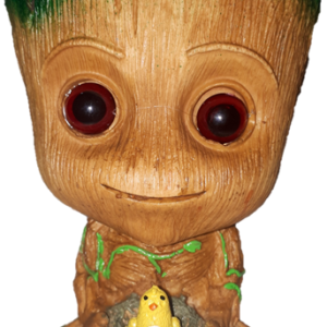 ENFEITE L051 BABY GROOT SENTADO COM PASSARO
